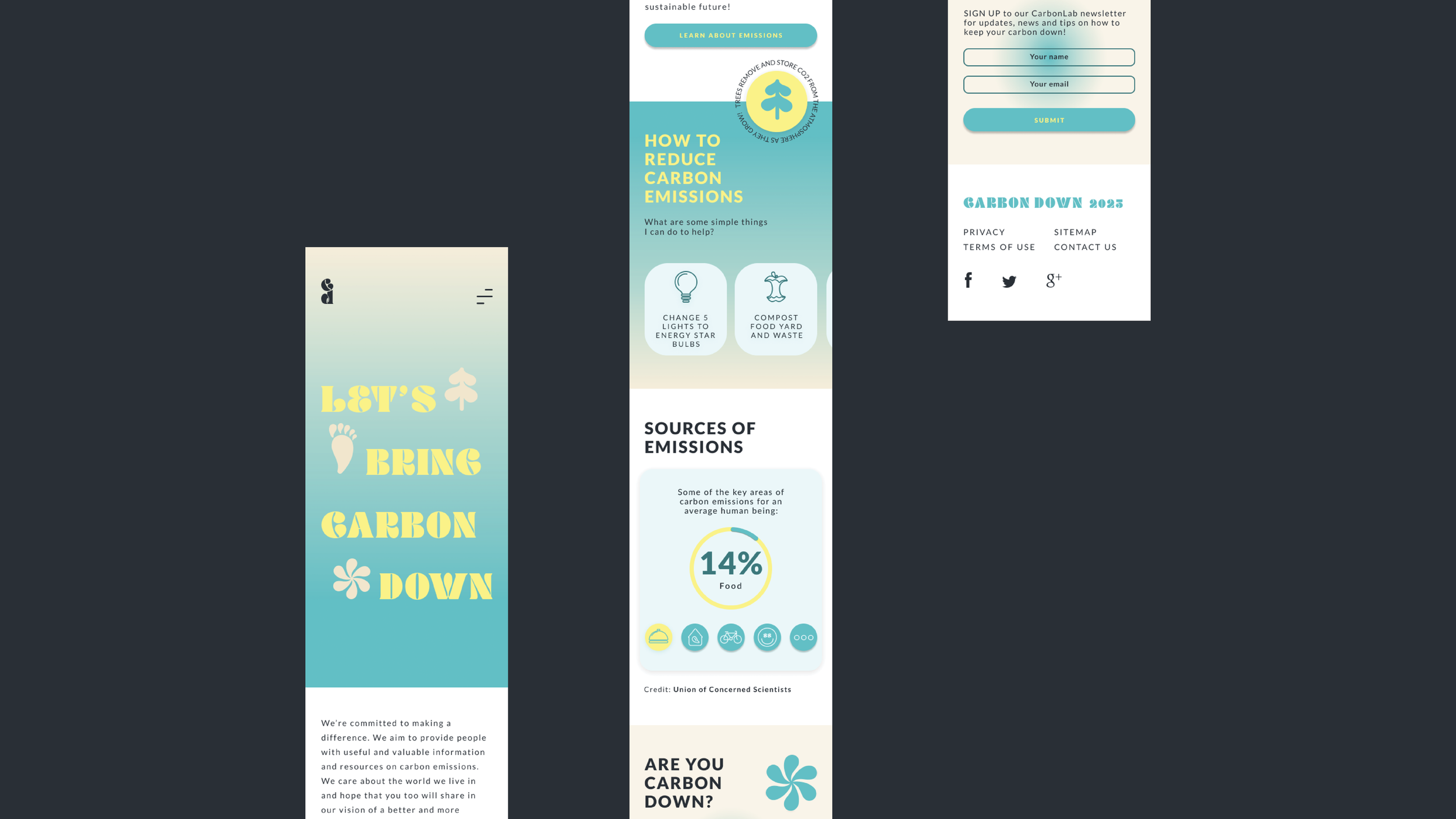 The carbon emissions website incorporates clean and vibrant colors, representing the positive impact students can make in reducing carbon emissions. Through engaging graphics, informative content, and interactive features, the aim is to inspire and educate students, and encourage them to be catalysts for change in creating a sustainable future.